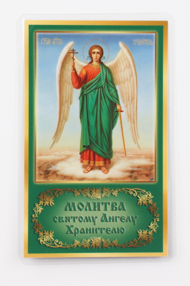 Икона в жесткой ламинации 5х8 с оборотом Ангел-Хранитель (ростовой)
