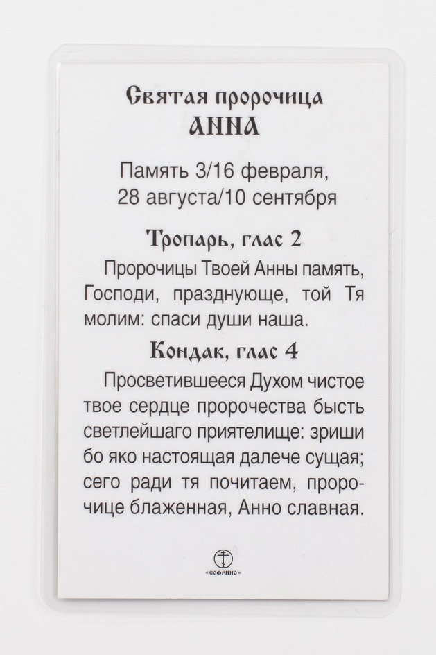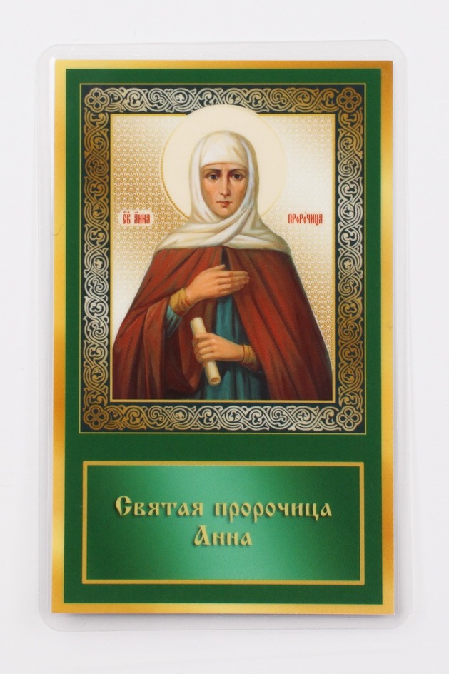 Икона в жесткой ламинации 5х8 с оборотом Анна Пророчица