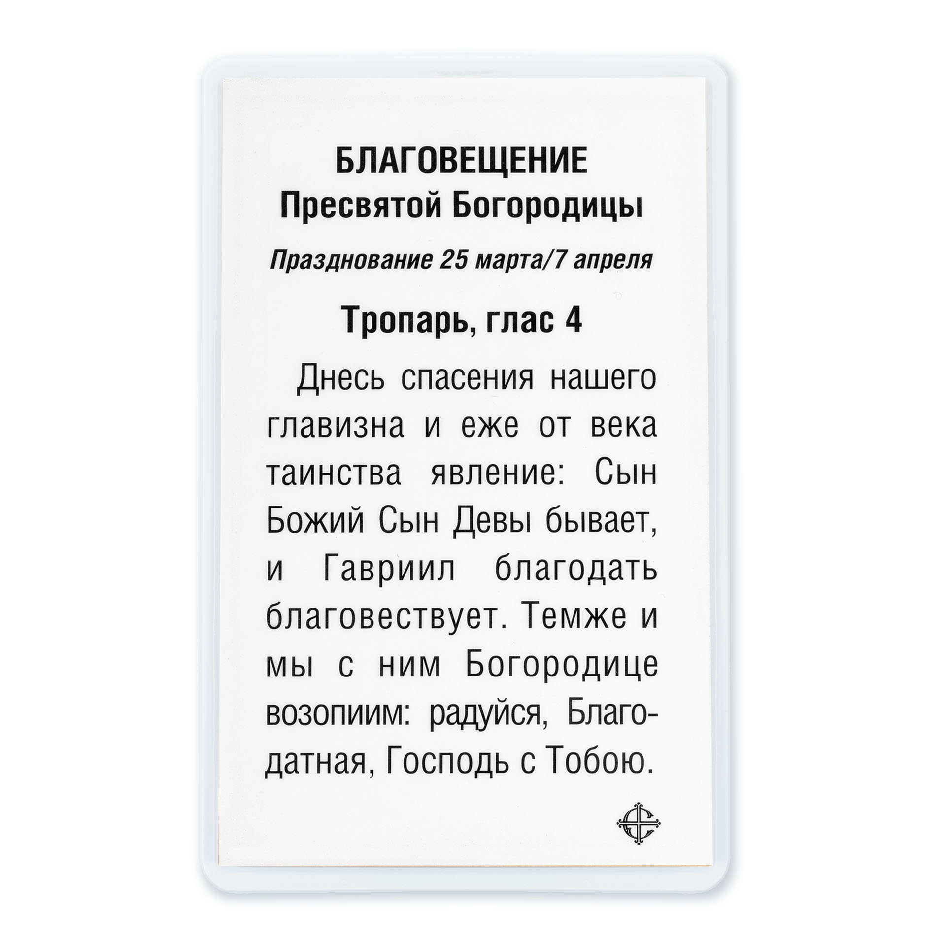 Икона в жесткой ламинации 5х8 с оборотом Благовещение