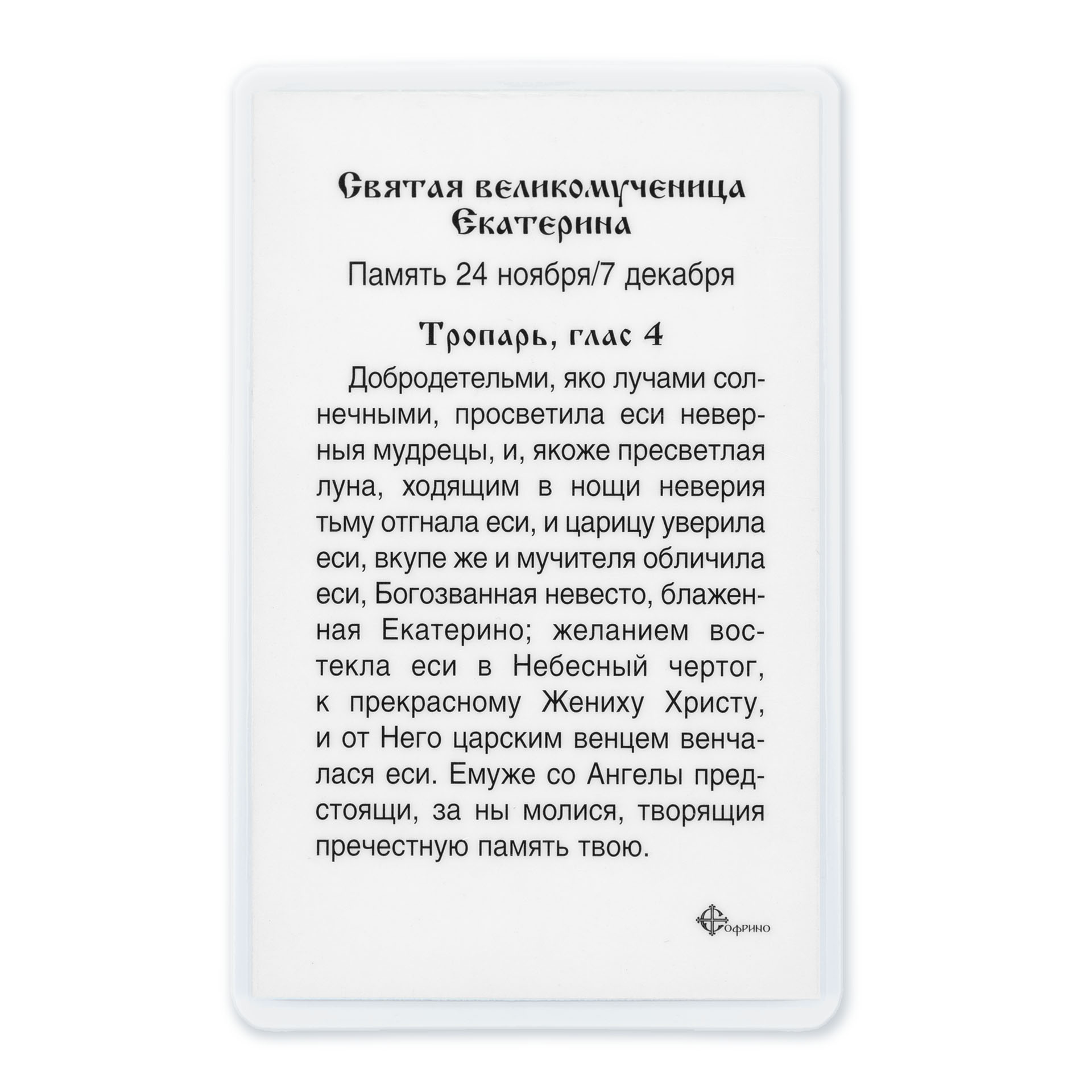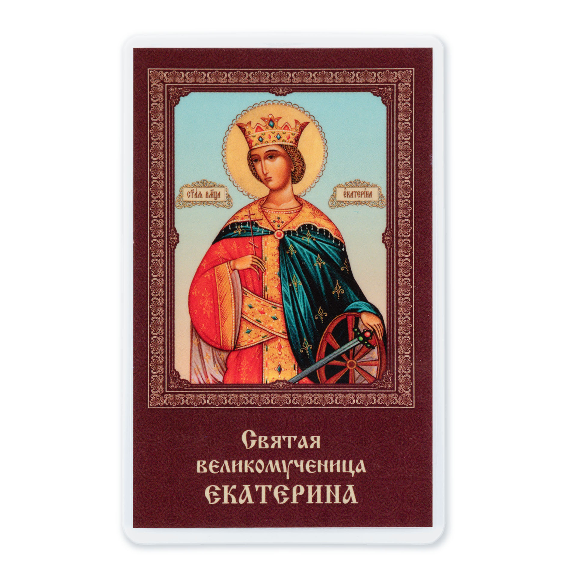Икона в жесткой ламинации 5х8 с оборотом Екатерина Александрийская, вмц.