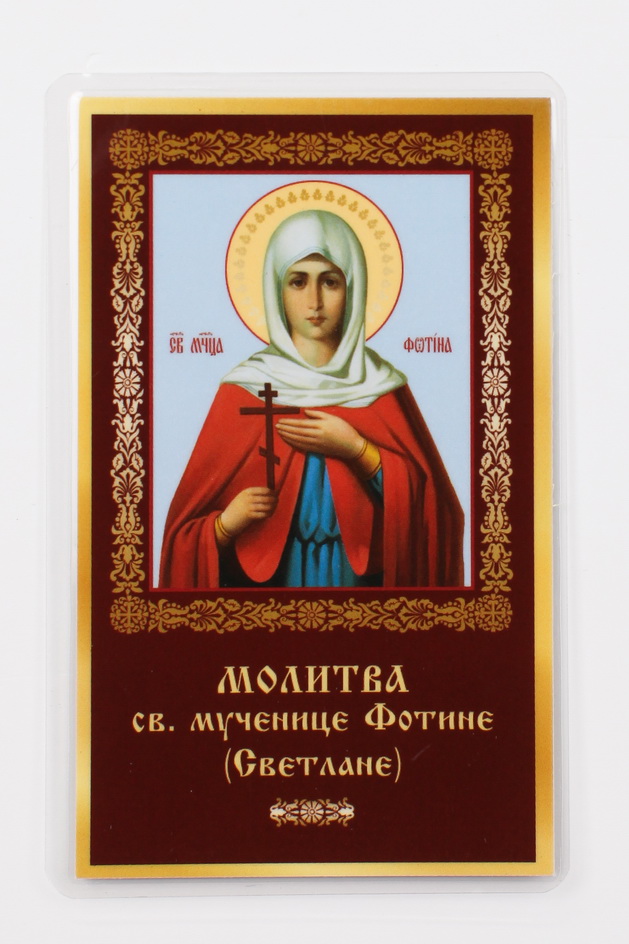 Икона в жесткой ламинации 5х8 с оборотом Фотина (Светлана)