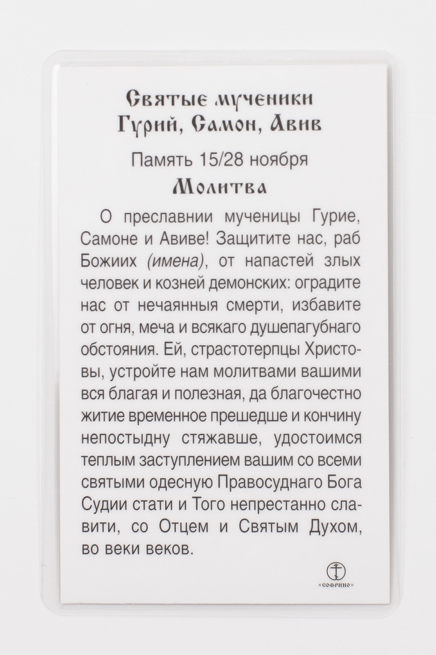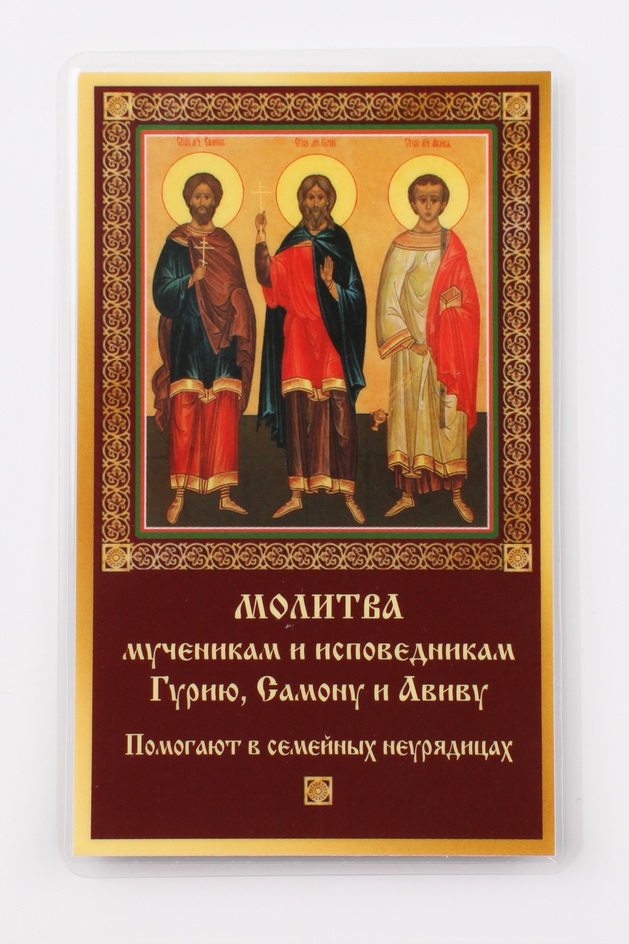 Икона в жесткой ламинации 5х8 с оборотом Гурий, Самон, Авив