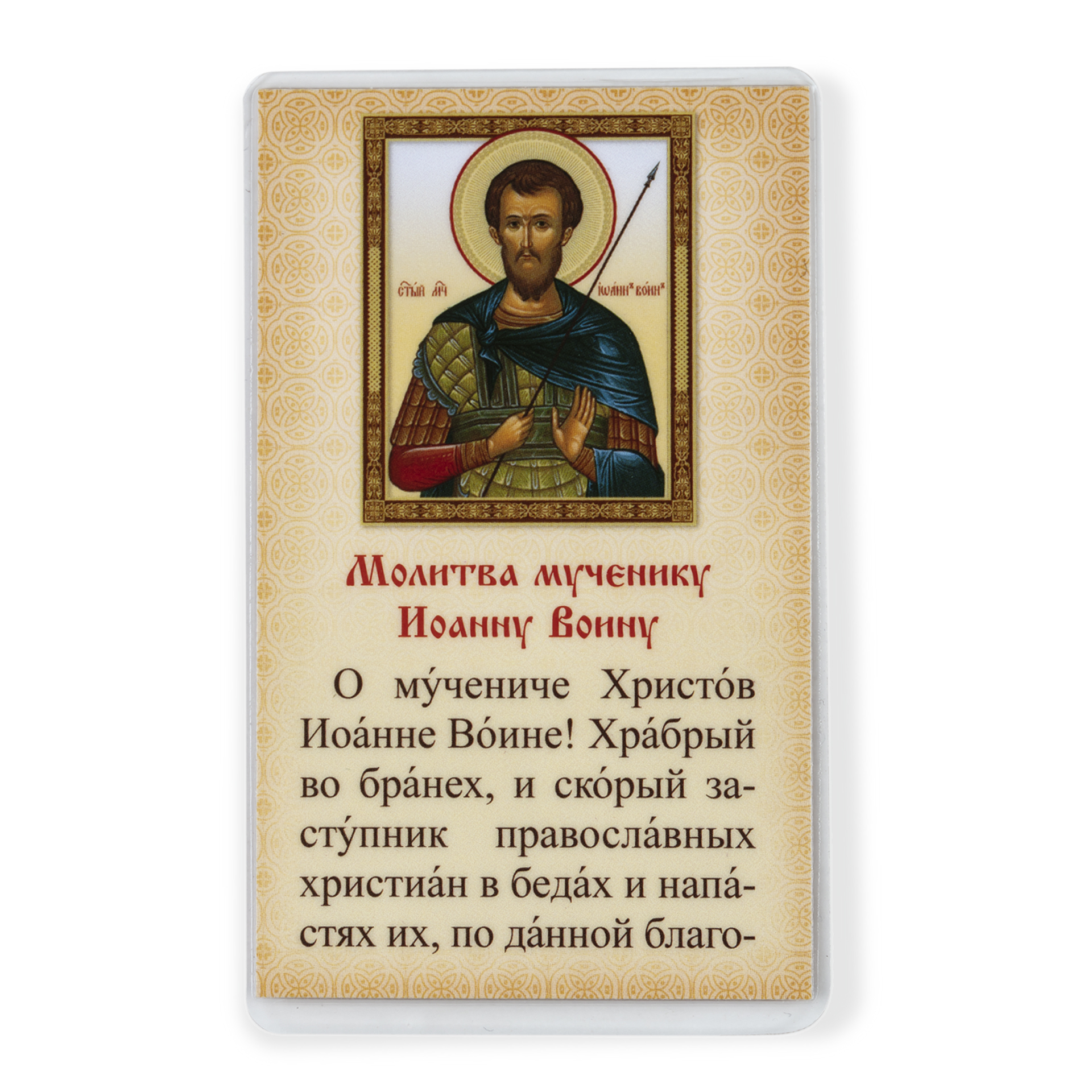 Икона в жесткой ламинации 5х8 с оборотом Иоанн Воин