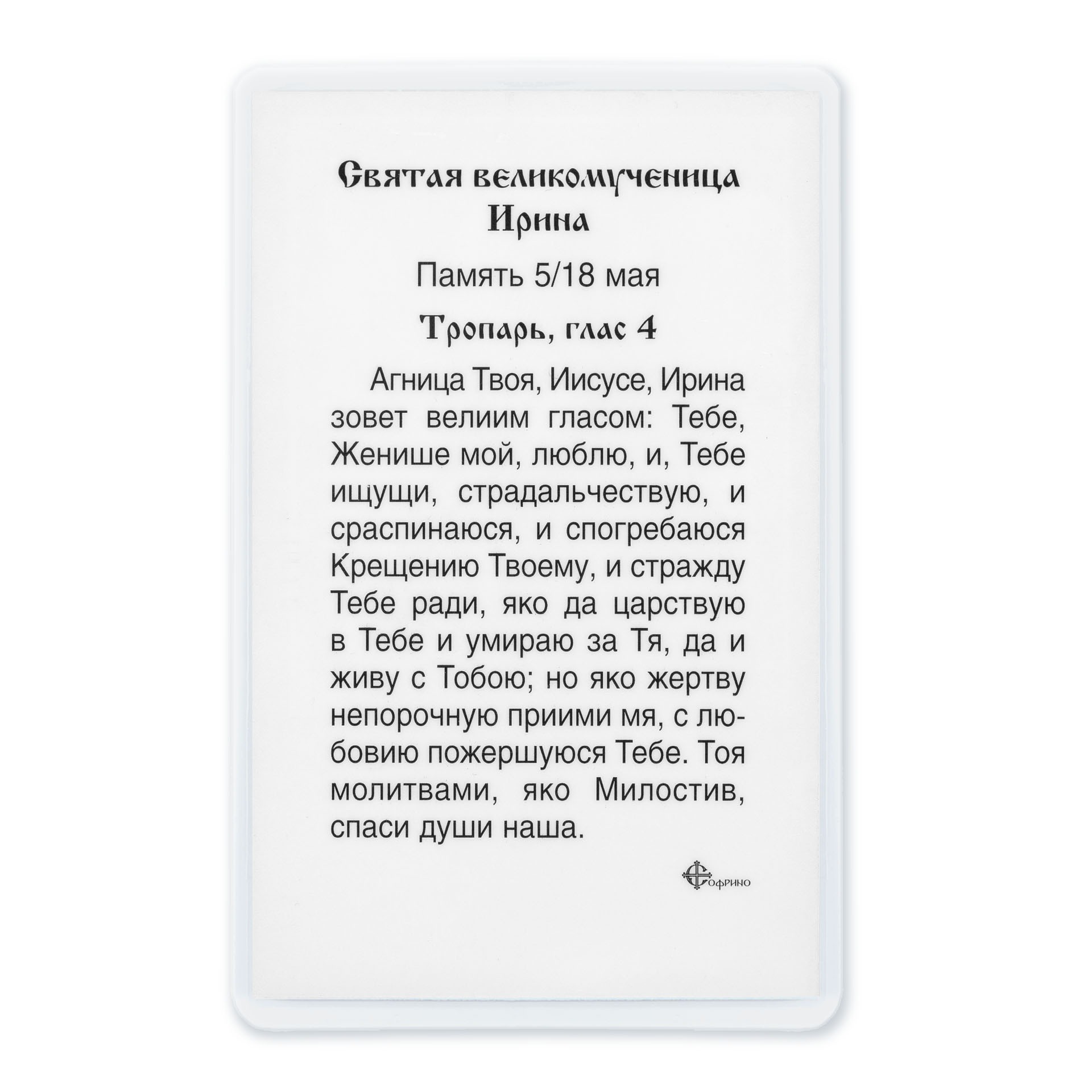 Икона в жесткой ламинации 5х8 с оборотом Ирина