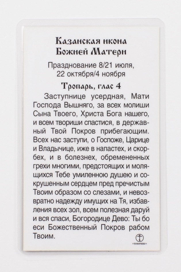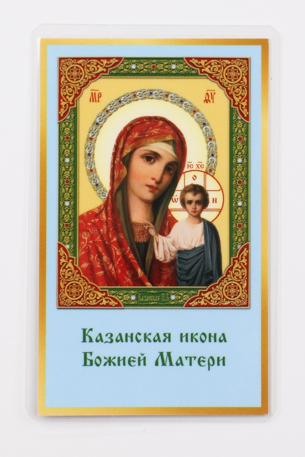 Икона в жесткой ламинации 5х8 с оборотом Казанская БМ