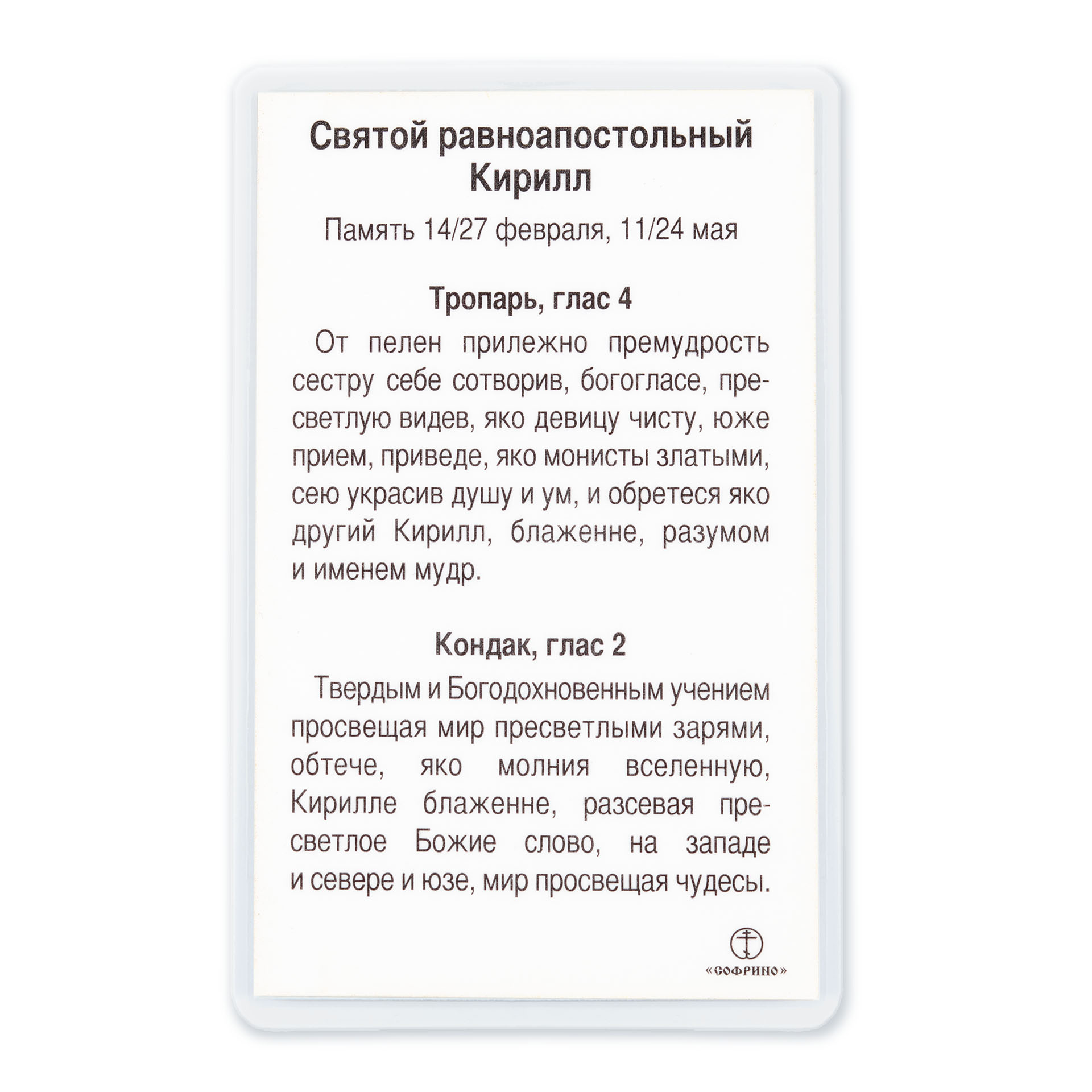 Икона в жесткой ламинации 5х8 с оборотом Кирилл