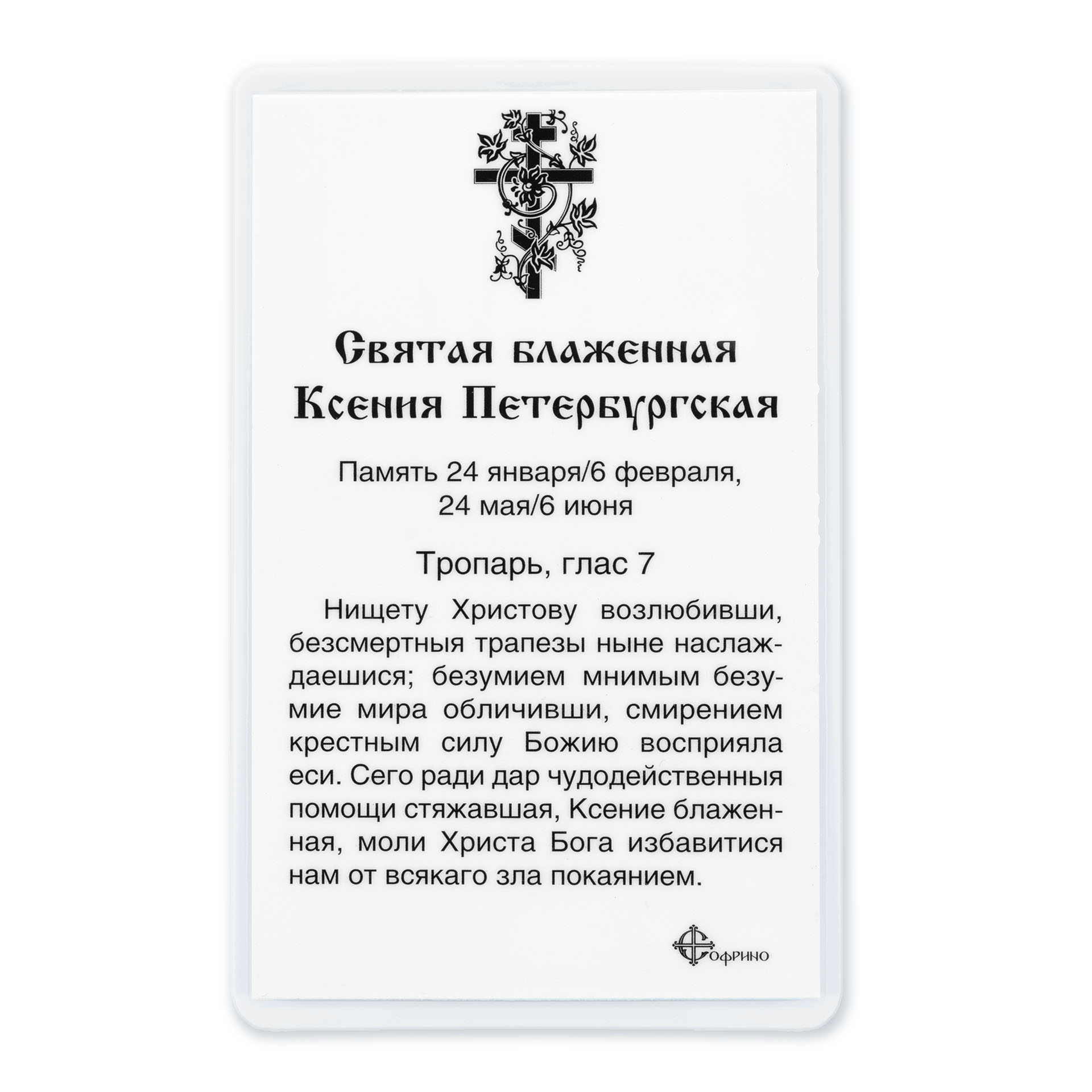 Икона в жесткой ламинации 5х8 с оборотом Ксения Петербургская блж.
