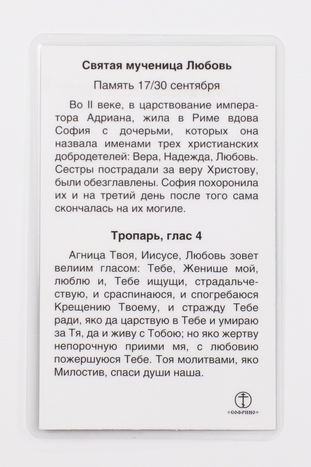 Икона в жесткой ламинации 5х8 с оборотом Любовь