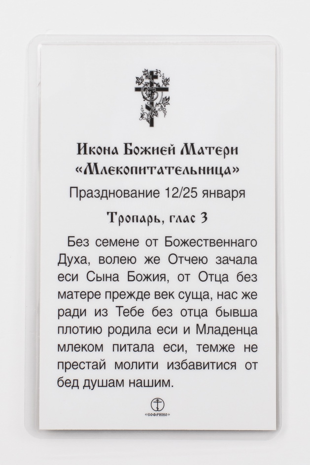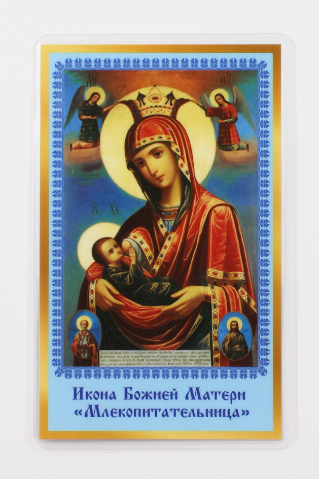 Икона в жесткой ламинации 5х8 с оборотом Млекопитательница БМ