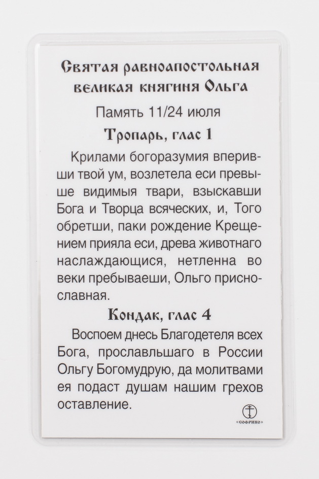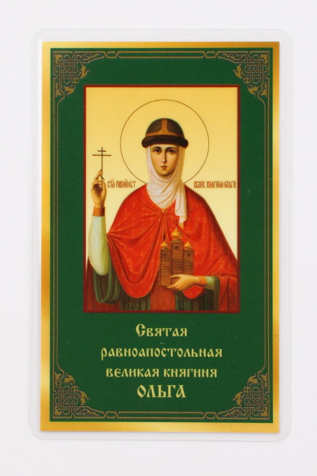 Икона в жесткой ламинации 5х8 с оборотом Ольга, св. равноап. вел. княгиня