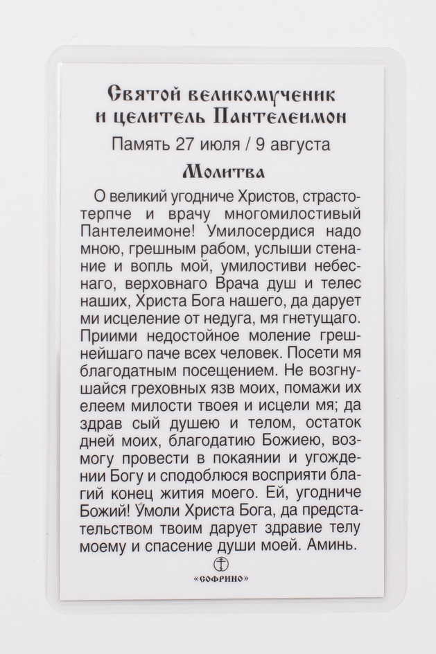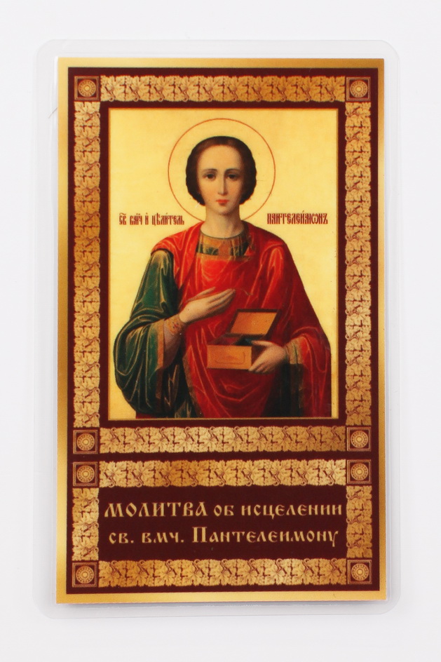 Икона в жесткой ламинации 5х8 с оборотом Пантелеимон