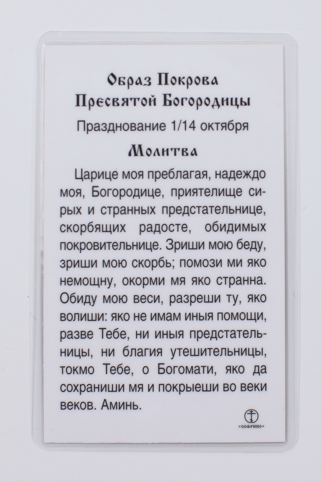 Икона в жесткой ламинации 5х8 с оборотом Покров (ростовой)