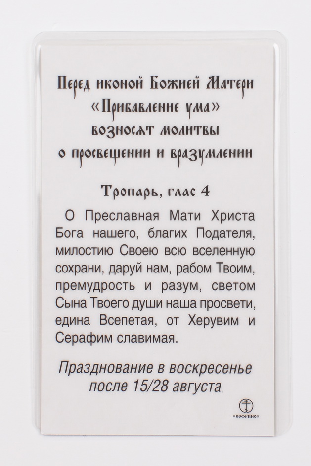 Икона в жесткой ламинации 5х8 с оборотом Прибавление ума