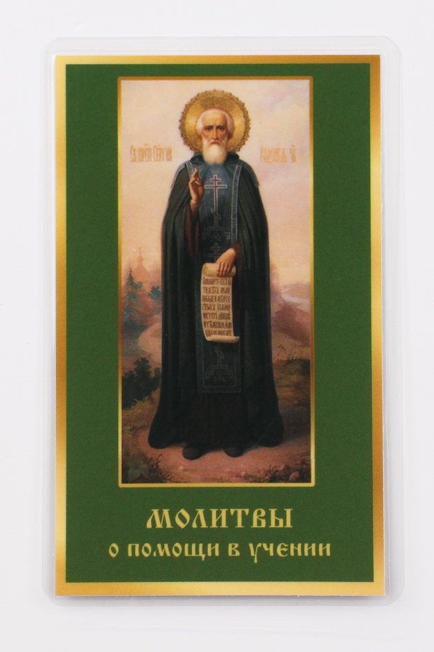 Икона в жесткой ламинации 5х8 с оборотом Сергий Радонежский