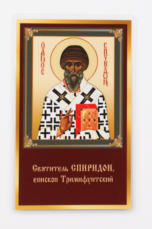 Икона в жесткой ламинации 5х8 с оборотом Спиридон Тримифунтский
