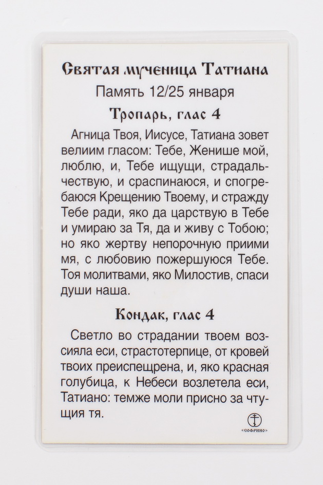 Икона в жесткой ламинации 5х8 с оборотом Татиана св. Римская, дева, мц.
