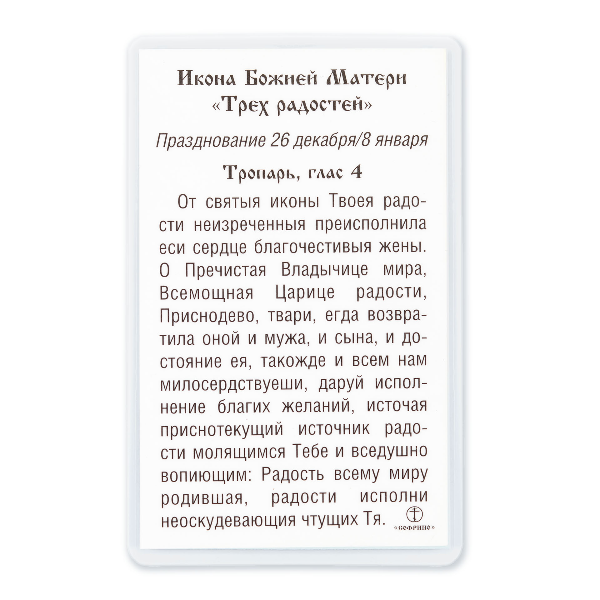 Икона в жесткой ламинации 5х8 с оборотом Трех радостей БМ