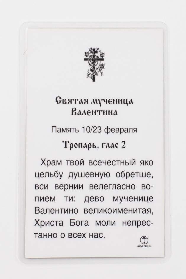 Икона в жесткой ламинации 5х8 с оборотом Валентина