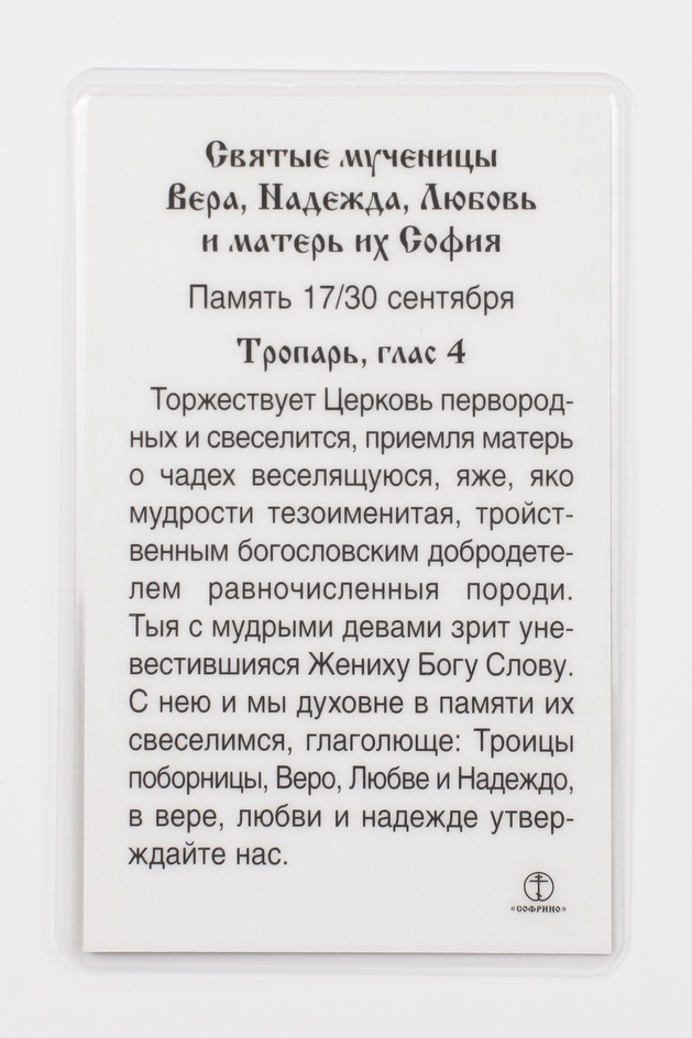 Икона в жесткой ламинации 5х8 с оборотом Вера Надежда Любовь