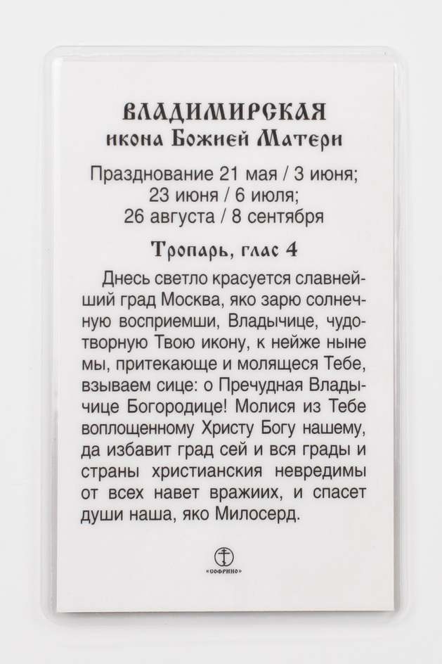 Икона в жесткой ламинации 5х8 с оборотом Владимирская БМ