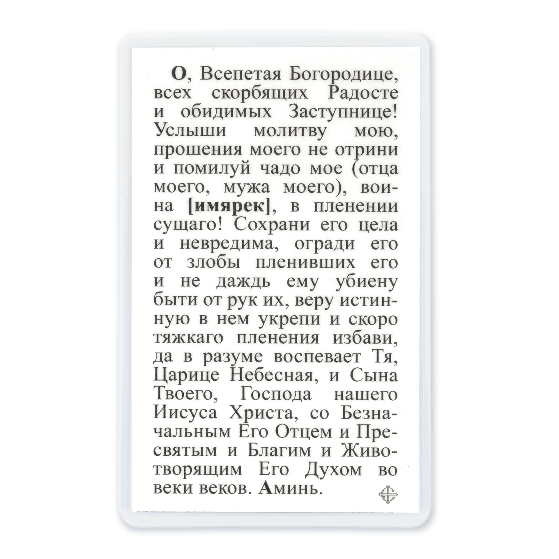 Икона в жесткой ламинации 5х8 с оборотом Всех скорбящих Радость