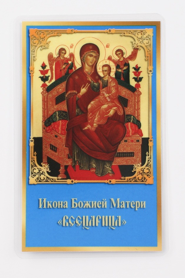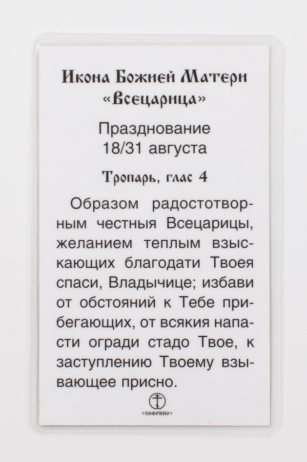Икона в жесткой ламинации 5х8 с оборотом Всецарица