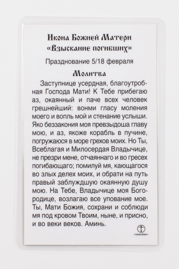 Икона в жесткой ламинации 5х8 с оборотом Взыскание погибших