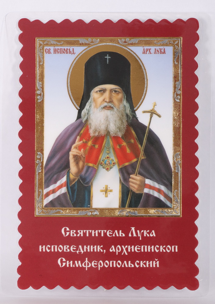 Икона в жесткой ламинации 8х11 с оборотом, двойное тиснение, высечка Лука Крымский 2