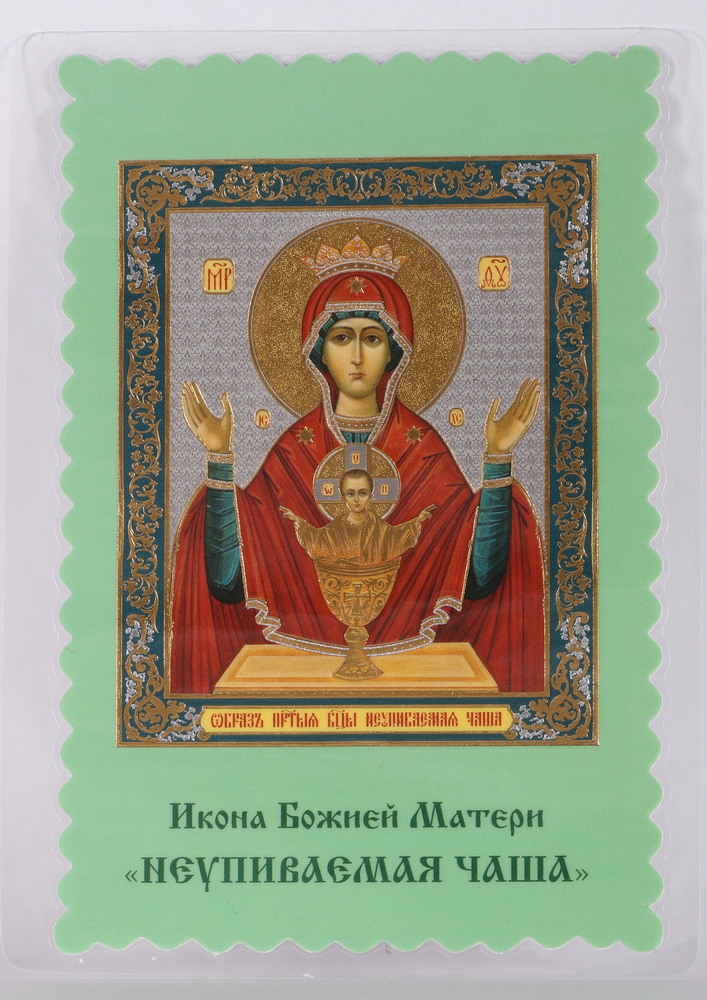 Икона в жесткой ламинации 8х11 с оборотом, двойное тиснение, высечка Неупиваемая Чаша 2