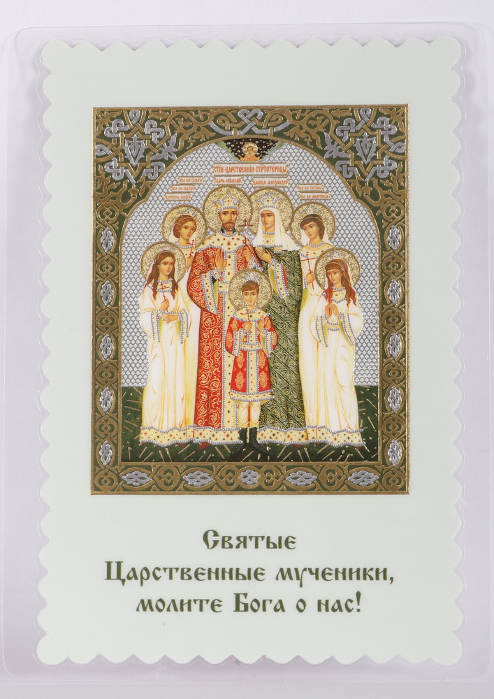 Икона в жесткой ламинации 8х11 с оборотом, двойное тиснение, высечка Царская семья