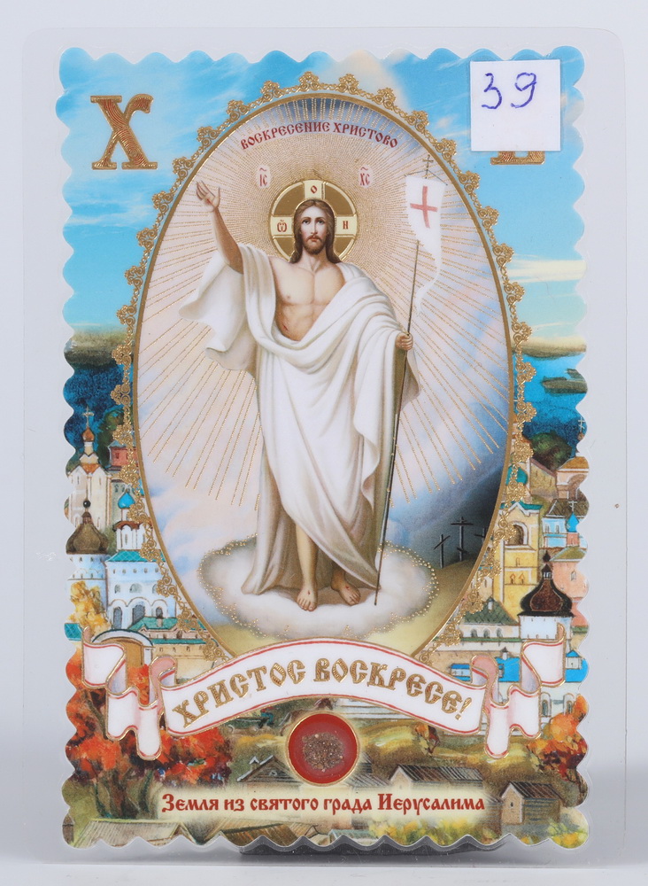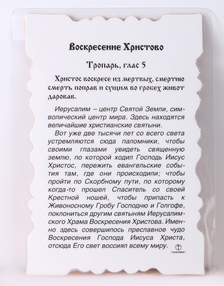 Икона в жесткой ламинации 8х11 с оборотом, тиснение, высечка, частица земли