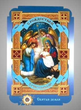 Икона в жесткой ламинации 8х11 с оборотом, тиснение, высечка, частица земли Рождество Христово 40