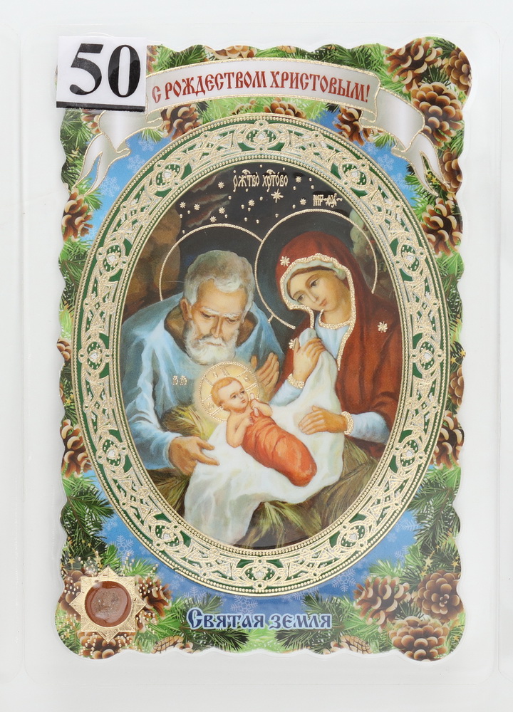 Икона в жесткой ламинации 8х11 с оборотом, тиснение, высечка, частица земли Рождество Христово 50