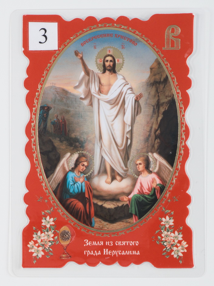 Икона в жесткой ламинации 8х11 с оборотом, тиснение, высечка, частица земли Воскресение Христово 3