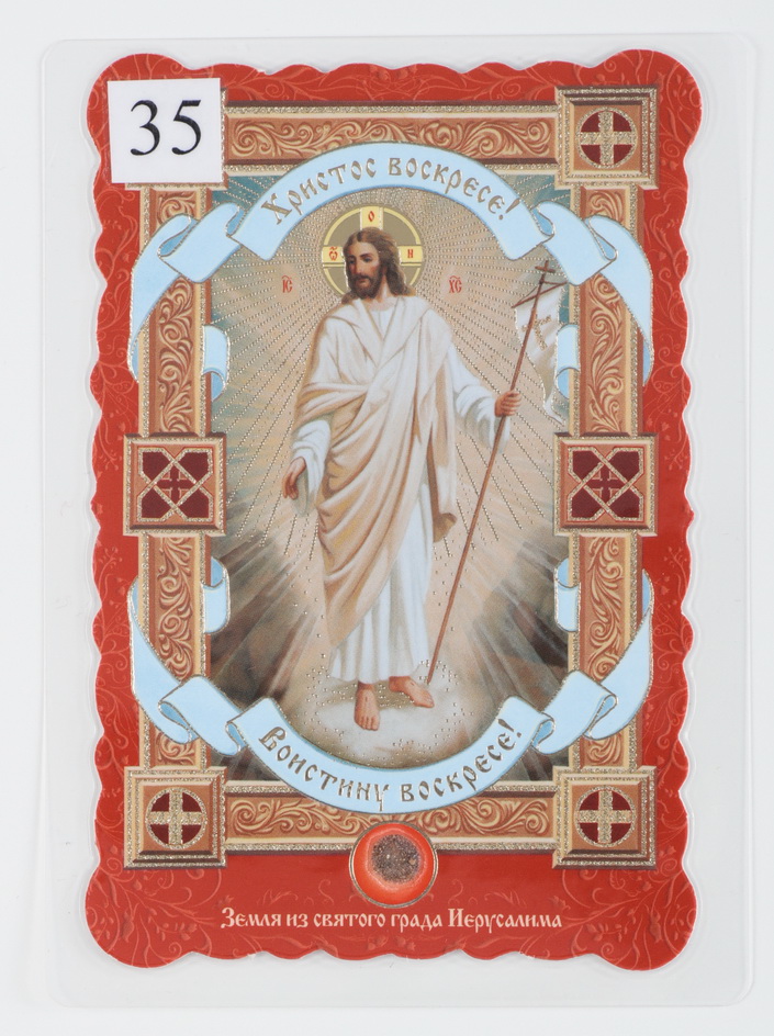 Икона в жесткой ламинации 8х11 с оборотом, тиснение, высечка, частица земли Воскресение Христово 35