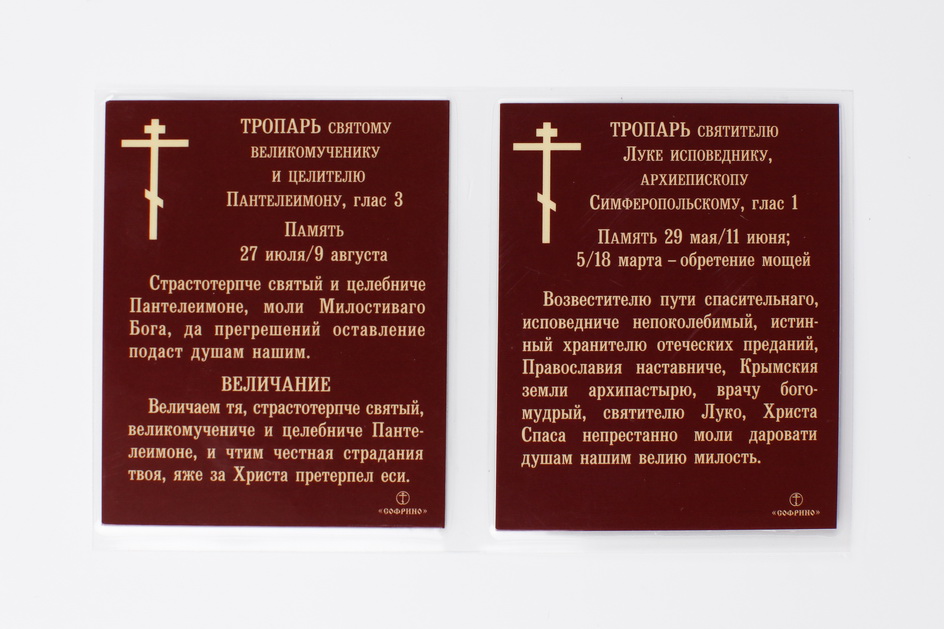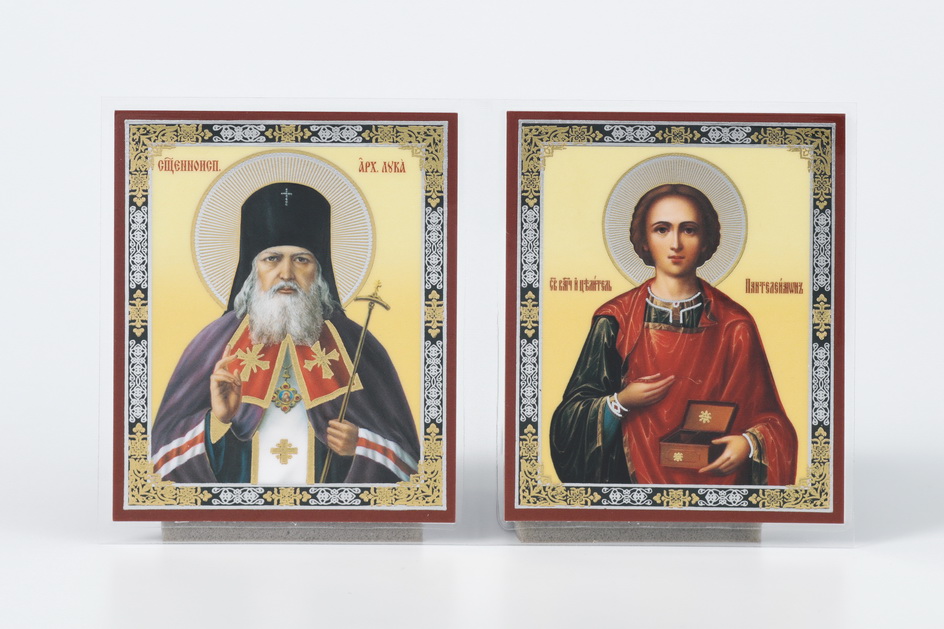 Икона в жесткой ламинации складень-двойник 7х12 двойное тиснение Лука 2 - Пантелеимон