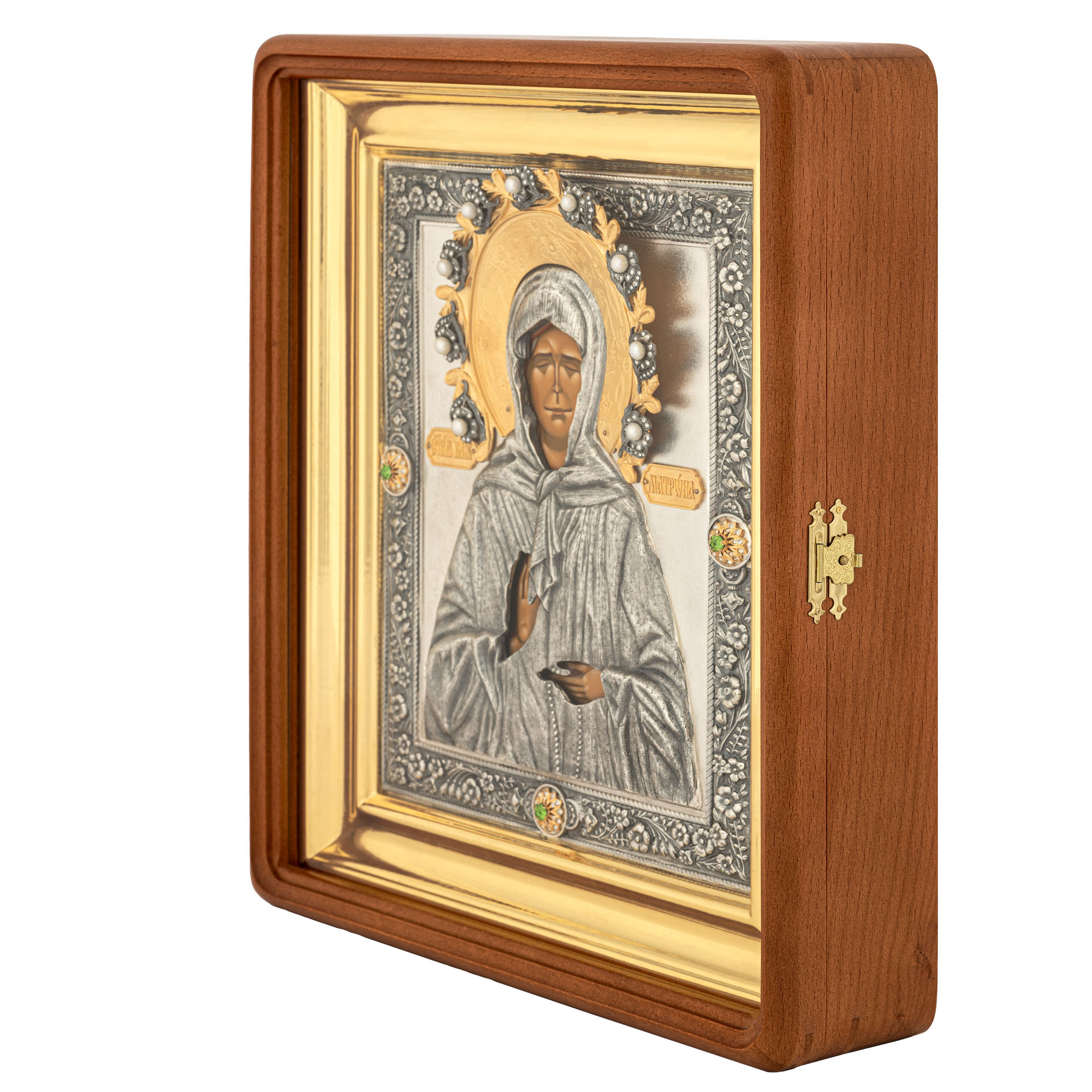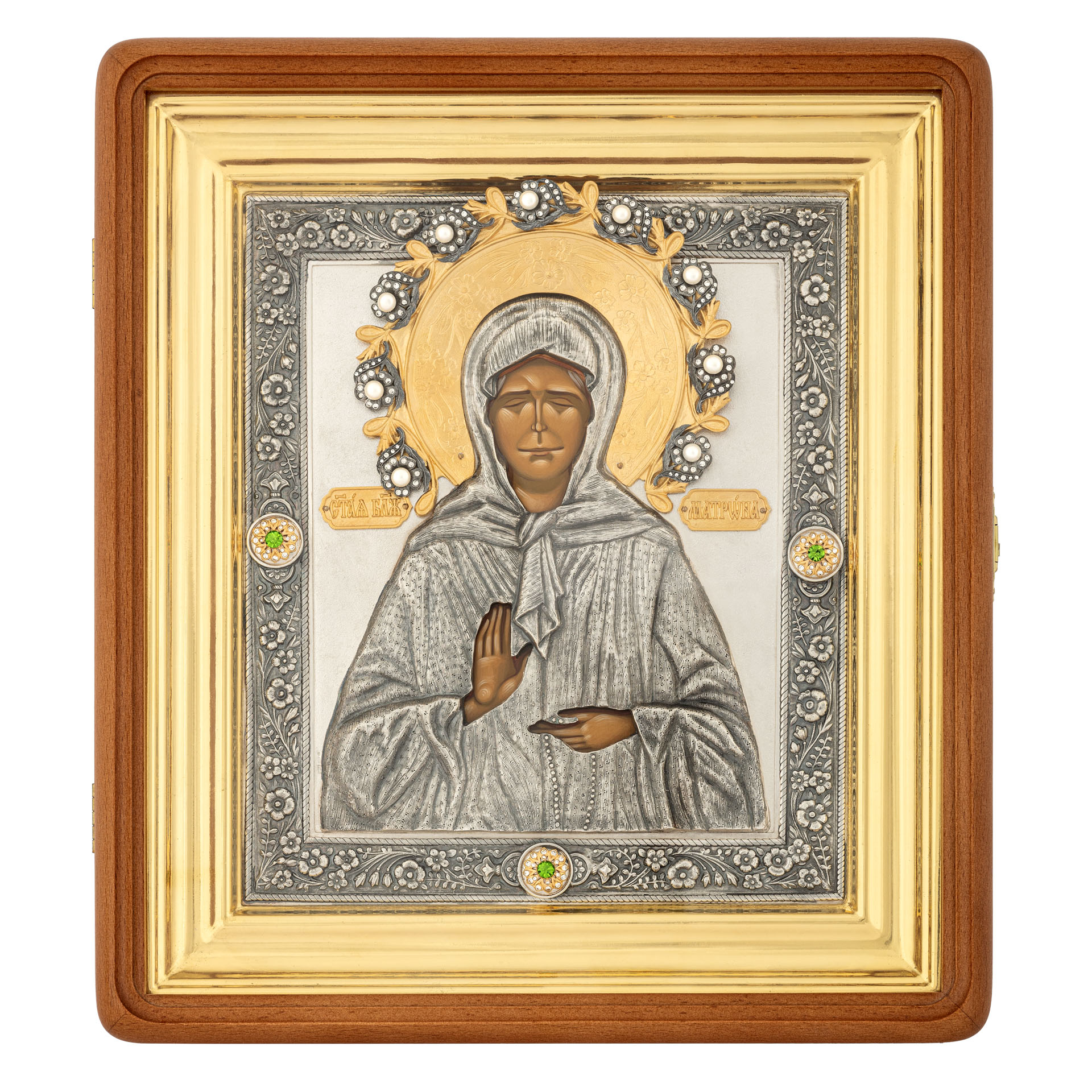 Икона живопись в гальванопластической ризе 30*40 / киот / Матрона