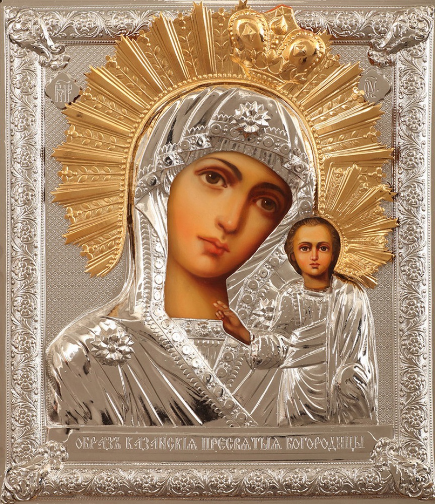 Риза изготавливается методом гальванопластики, из-за определенного техпроцесса все габариты и вес изделия могут отличаться. Икона написана на МДФ, которая покрыта левкасом. Риза изготовлена из меди, покрыта никелем и гальваническим золотом. Тыльная сторона ризы обтянута бархатом. По желанию заказчика ризу можно сделать полностью золоченой или полностью покрытой никелем.