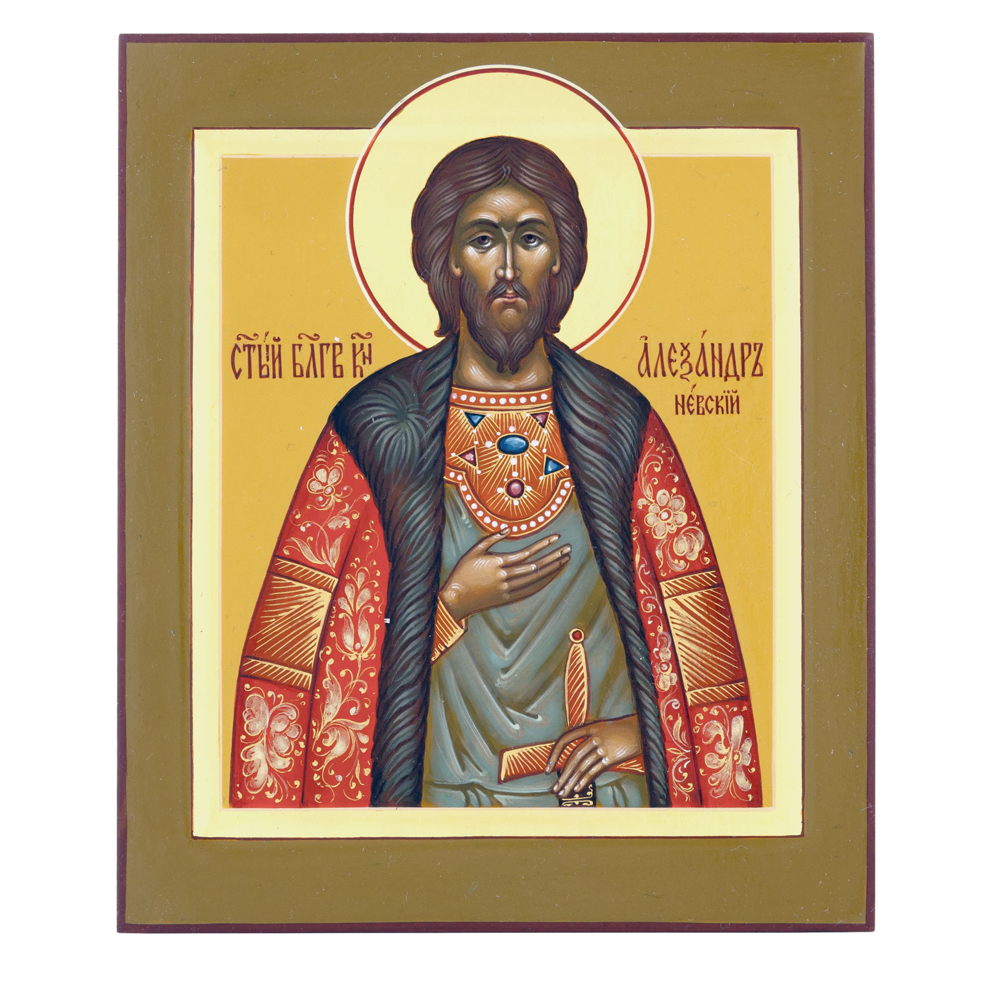 Икона живописная на доске 11х13 темпера, золоченый нимб, ковчег Александр Невский, 02876