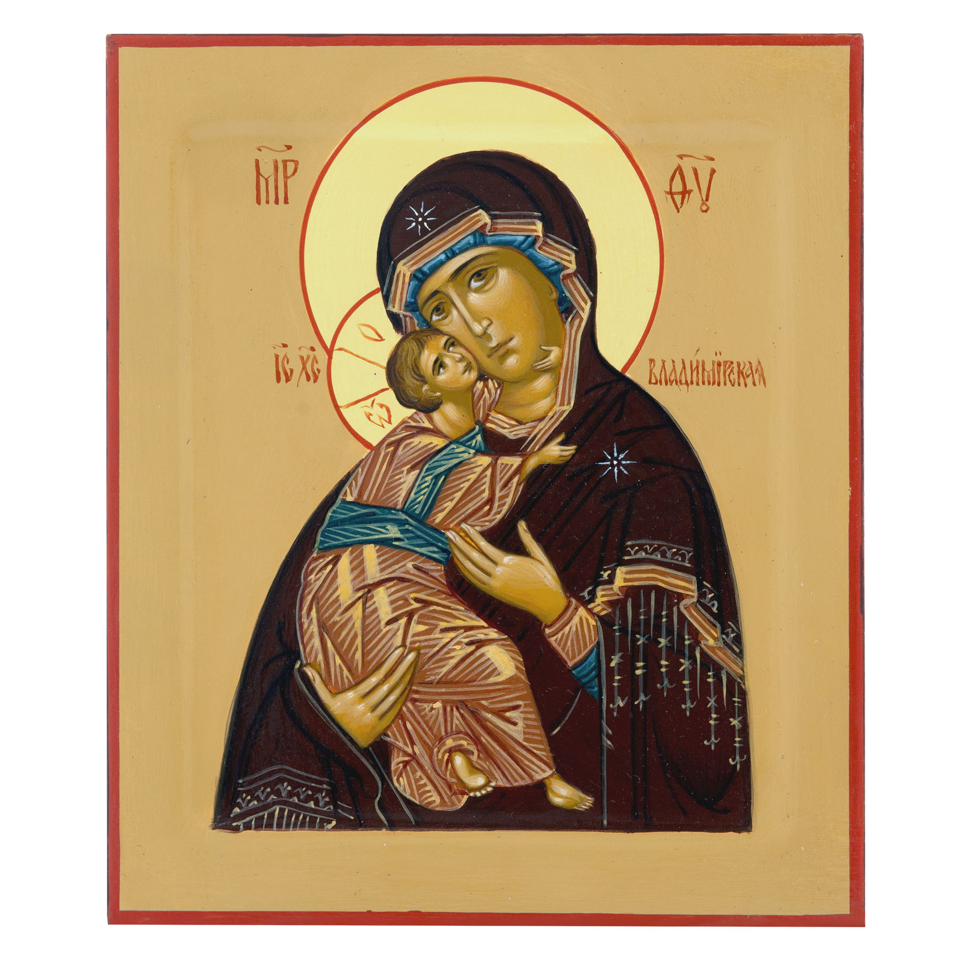 Икона живописная на доске 11х13 темпера, золоченый нимб, ковчег Владимирская БМ, 02476