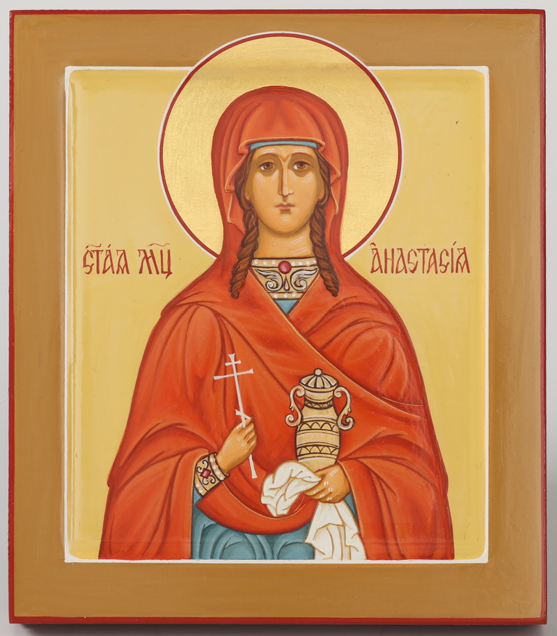 Доска изготовлена из липы, ковчег, покрытие левкас, краски темпера, покрытие нимба сусальным золотом, защитное покрытие иконы - олифа и водный лак.