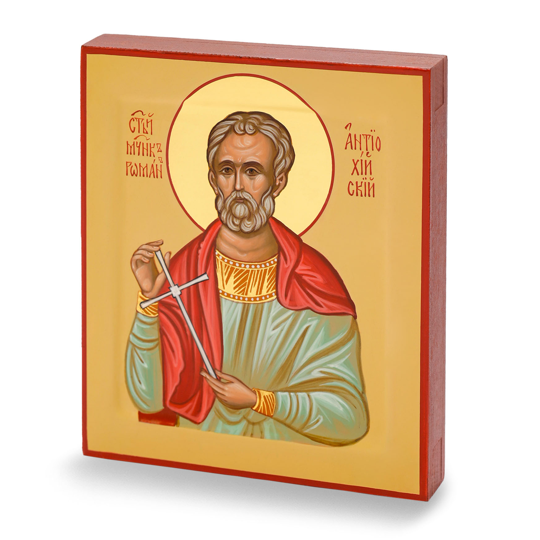 Икона живописная на доске 13х15 масло, золоченый нимб Роман