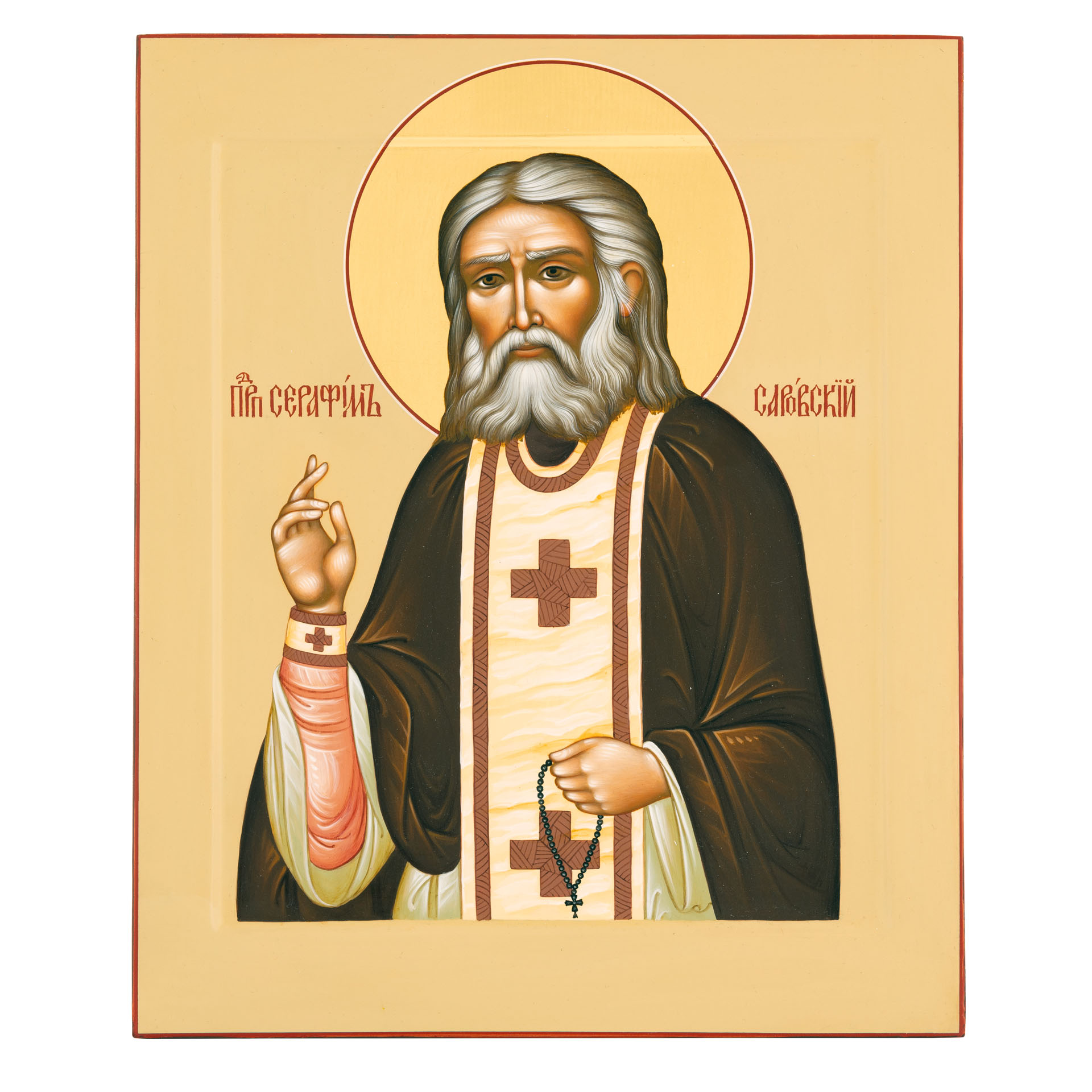 Икона живописная на доске 24х30 масло, золоченый нимб Серафим Саровский, 03885
