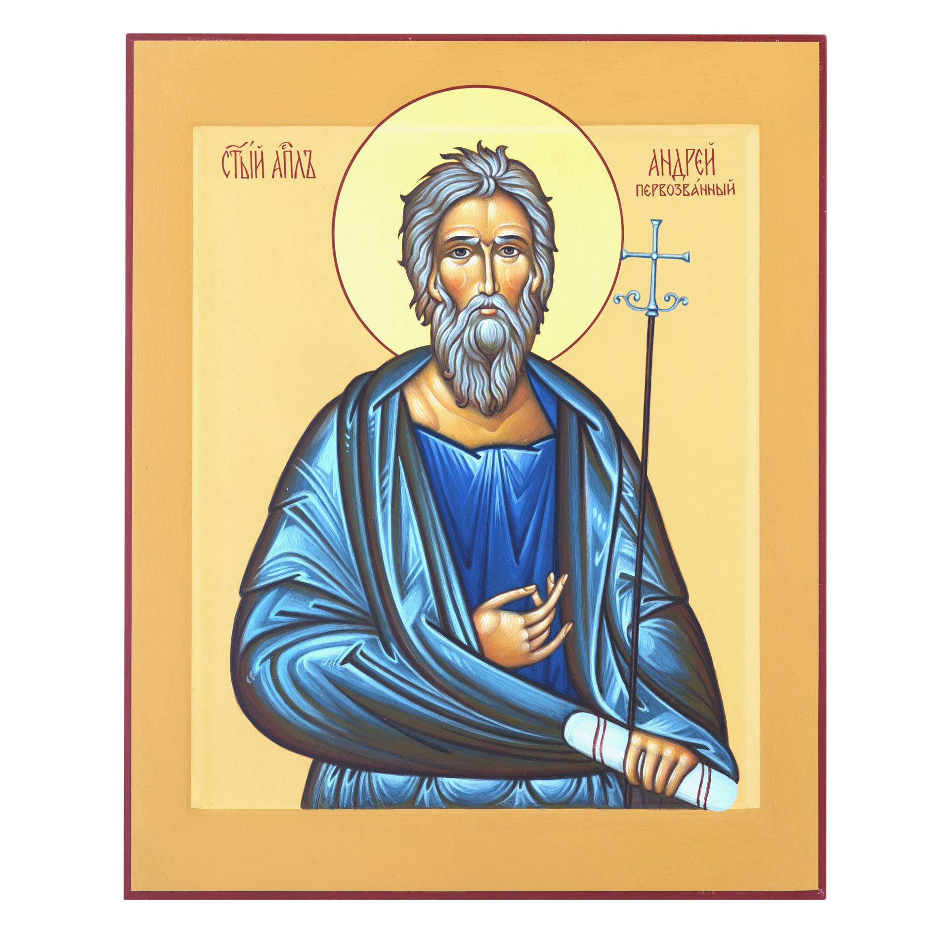 Икона живописная на доске 24х30 темпера, золоченый нимб, ковчег Андрей Первозванный, 02480
