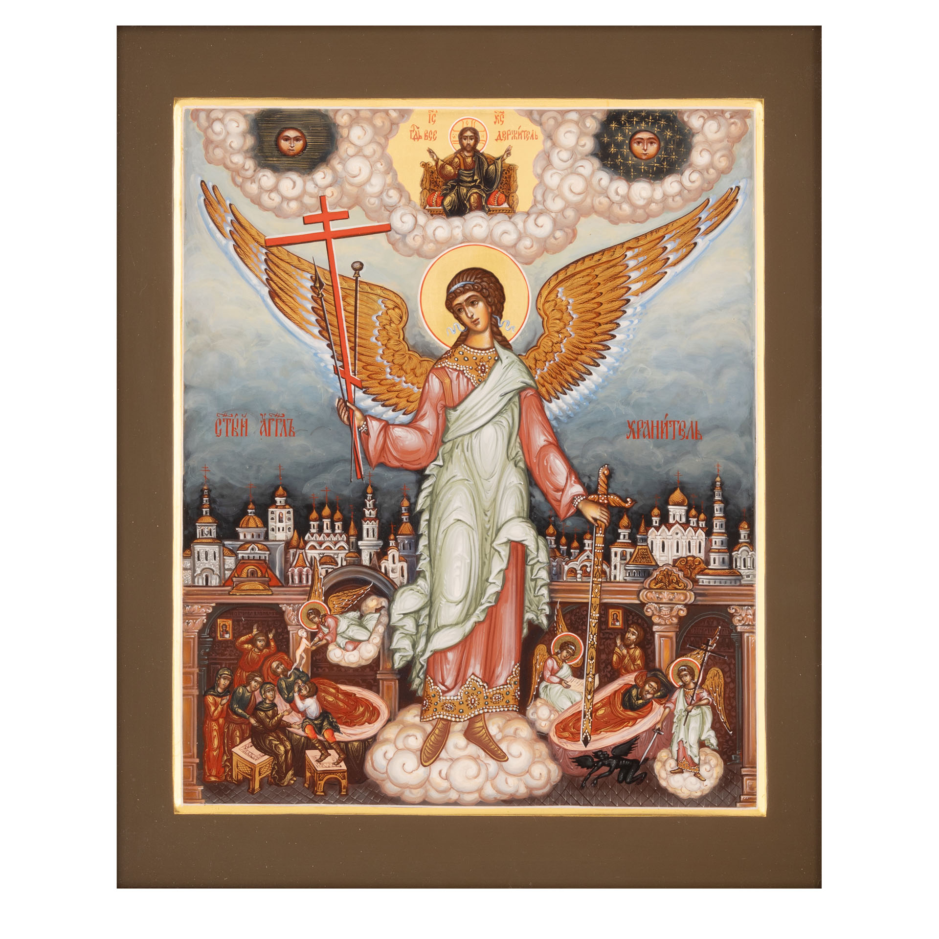 Икона живописная на доске 24х30 темпера, золоченый нимб, ковчег Ангел Хранитель, 01132