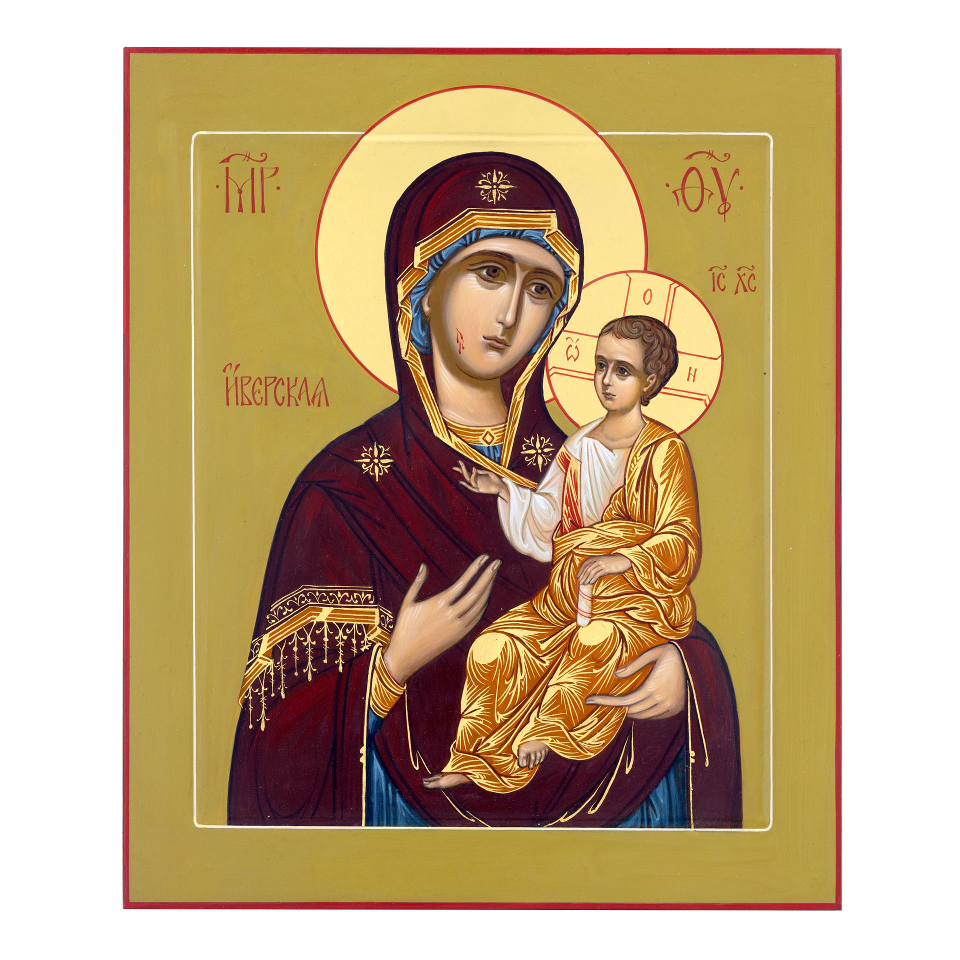 Икона живописная на доске 24х30 темпера, золоченый нимб, ковчег Иверская БМ, 03890
