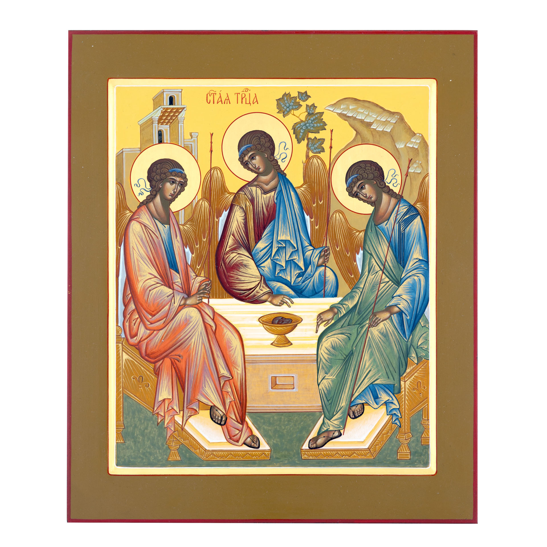 Икона живописная на доске 24х30 темпера, золоченый нимб, ковчег Троица (Рублевская), 03894