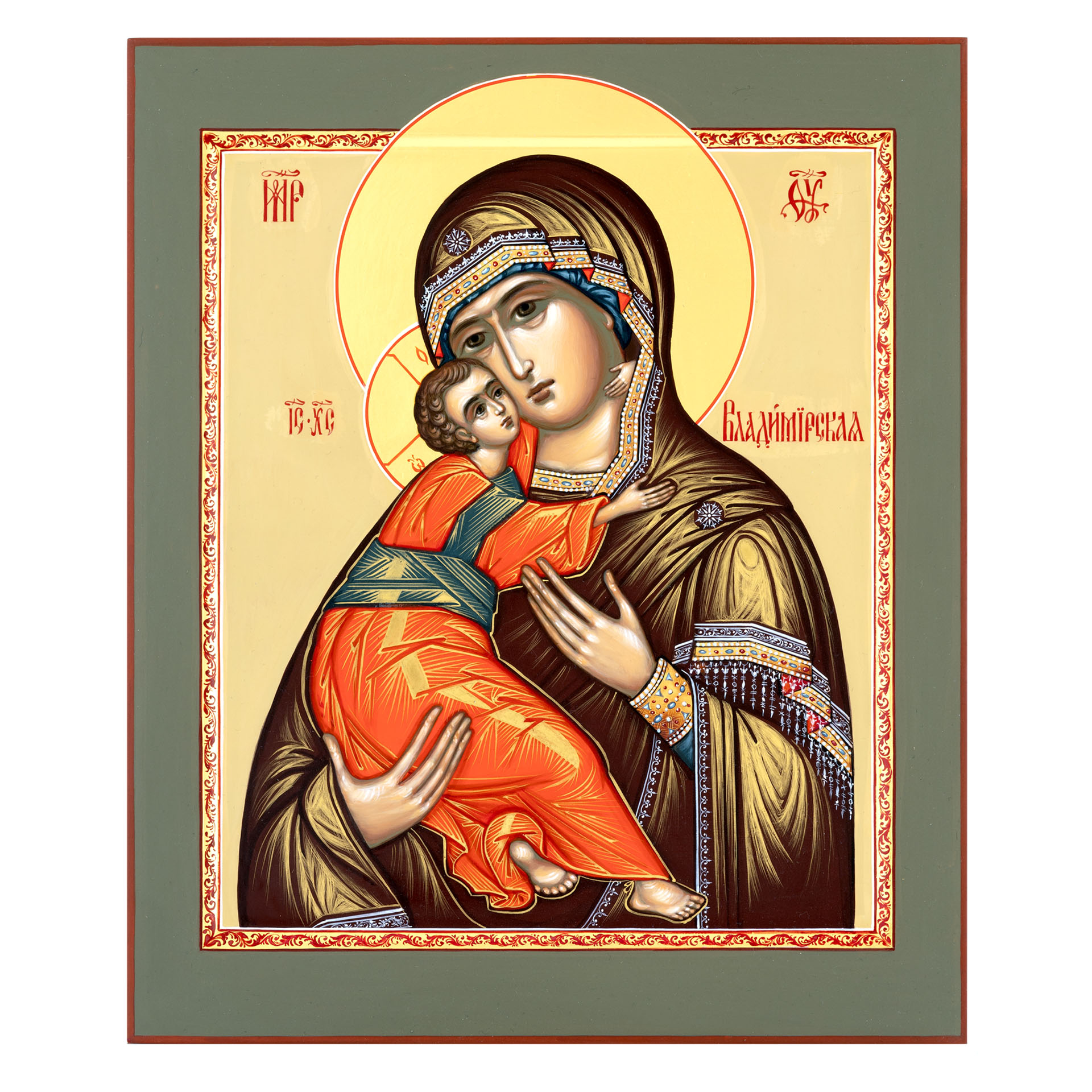 Икона живописная на доске 24х30 темпера, золоченый нимб, ковчег Владимирская БМ, 01950