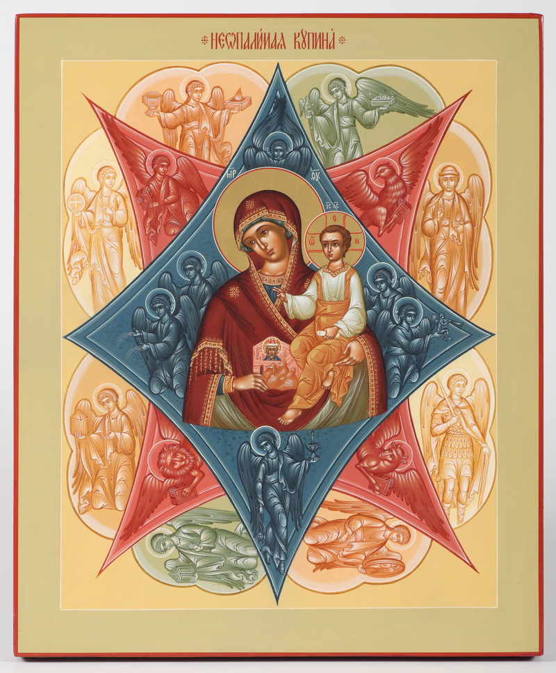 Икона живописная на доске 33х40 масло, золоченный нимб Неопалимая Купина