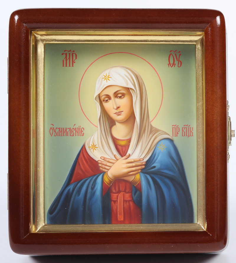 Икона живописная на доске в киоте 11х13 масло, киот №1 Умиление БМ